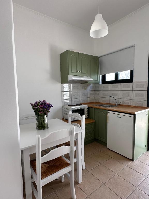 Η ιδιωτική βεράντα, εξοπλισμένη με τραπέζι, προσφέρει άμεση πρόσβαση στον κήπο και αποτελεί το ιδανικό σημείο για χαλάρωση, καφέ ή ξεκούραση μετά τη θάλασσα, μέσα σε ένα ήσυχο και φιλικό περιβάλλον.